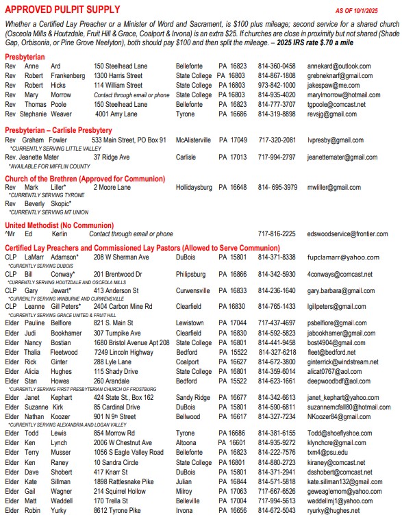 HUNTINGDON PRESBYTERY